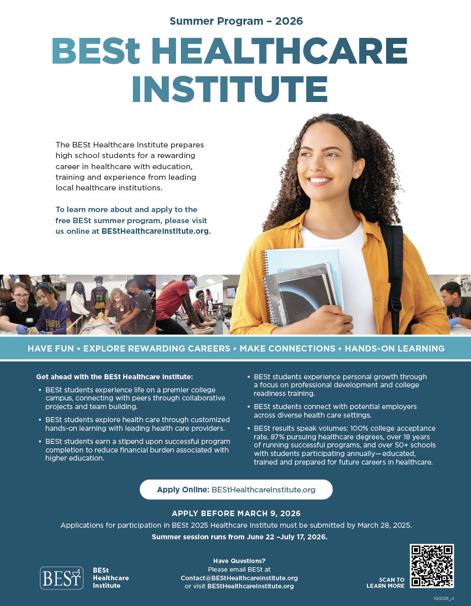 Help us educate, train, and prepare underrepresented in medicine high school students for various careers in healthcare. Download a standard Letter-sized poster or flyer to display or distribute at your school or institution.