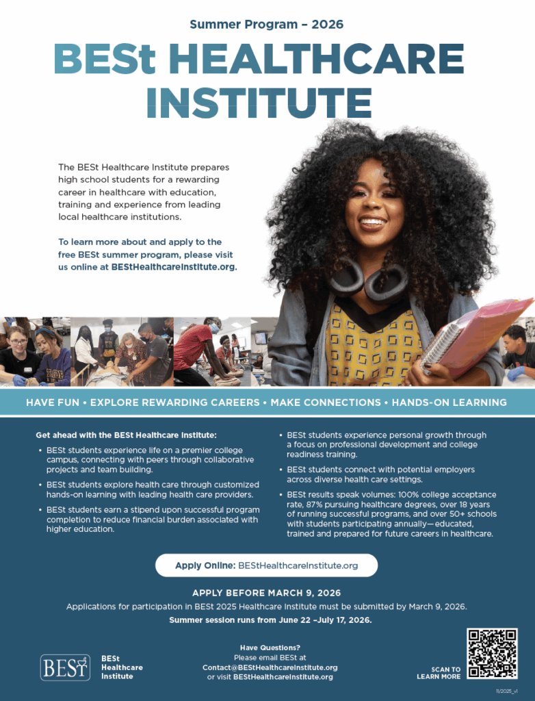 Help us educate, train, and prepare underrepresented in medicine high school students for various careers in healthcare. Download a standard Letter-sized poster or promotional flyers and distribute them at your school or institution.